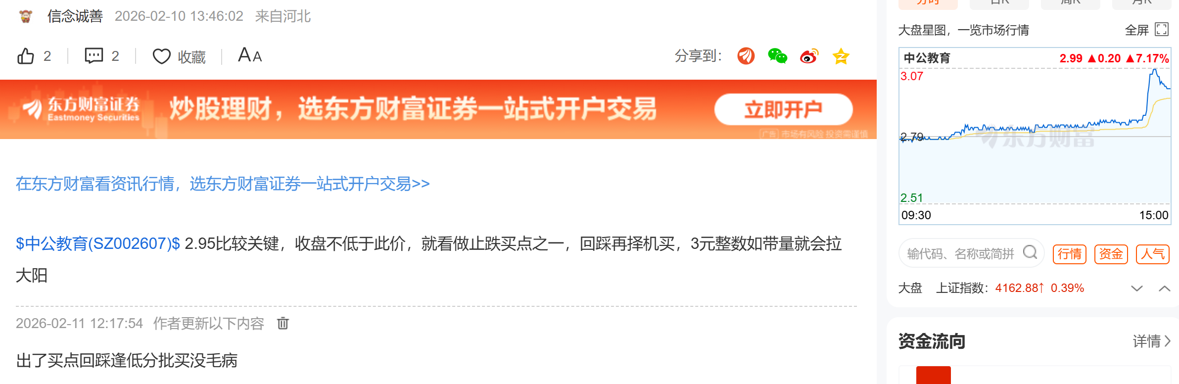 温馨提示: 1.根据《证券法》规定,禁止编造、传播虚假信息或者误导性信息,扰乱证券市场;2.用户在本社区发表的所有资料、言论等仅代表个人观点,与本网站立场无关,不对您构成任何投资建议。用户应基于自己的独立判断,自行决定证券投资并承担相应风险。《东方财富社区管理规定》
