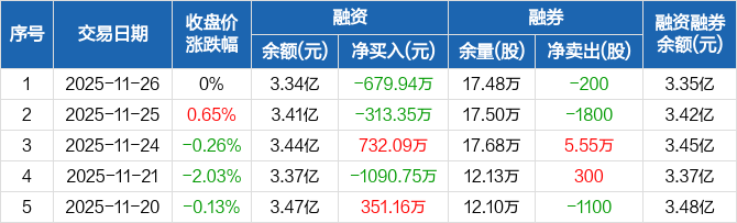 江苏国信:融资净偿还679.94万元,融资余额3.34亿元(11-26)