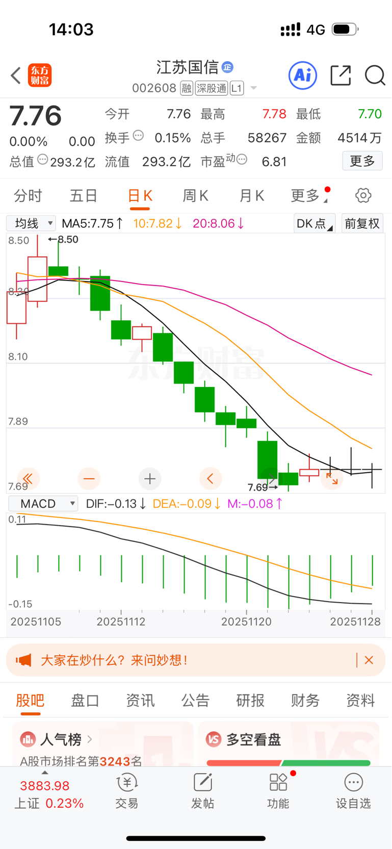 $江苏国信(SZ002608)$ 能连续三天不红不绿,你是这个
