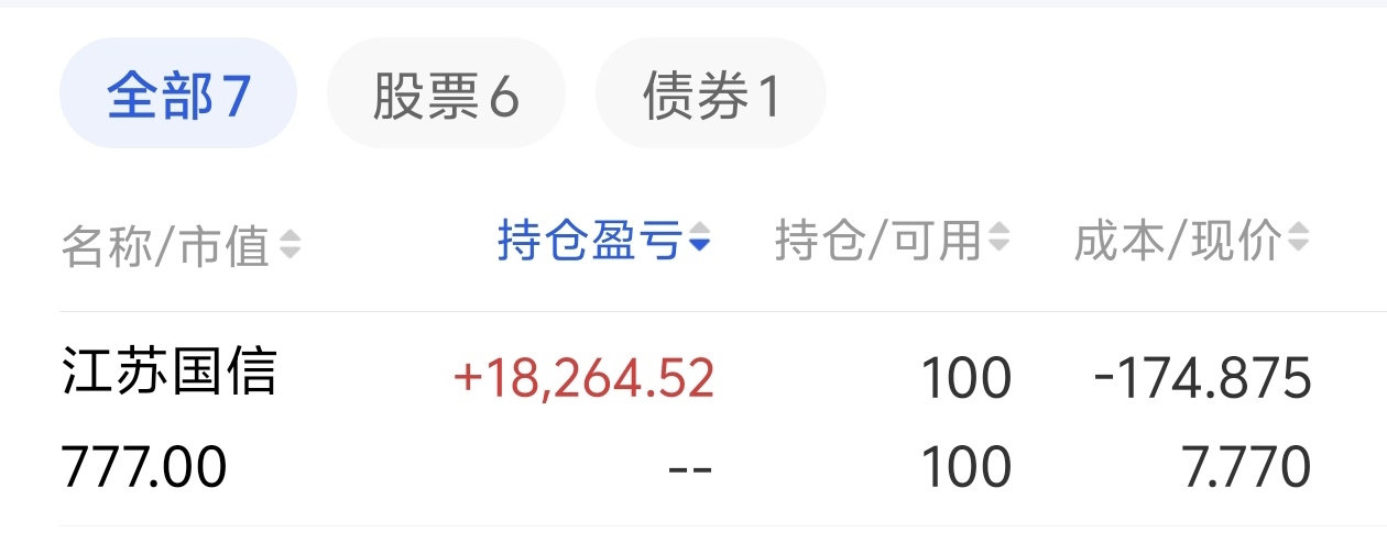 $江苏国信(SZ002608)$ 江苏国信依然100股。跌破7.5加仓。。。