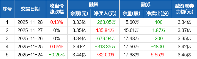 江苏国信:融资净偿还263.05万元,融资余额3.33亿元(11-28)