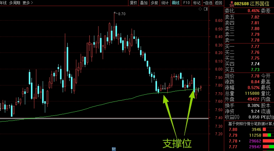 $江苏国信(SZ002608)$ 近期主要是看回落到大均线7.76位置附近的支撑,能稳住就问题不大,至少能看个横盘震荡,但有效跌破就要严格控制仓位,防着潜在的破位风险了,等后面走稳了再回补仓位。#炒股日记# #周末杂谈#
