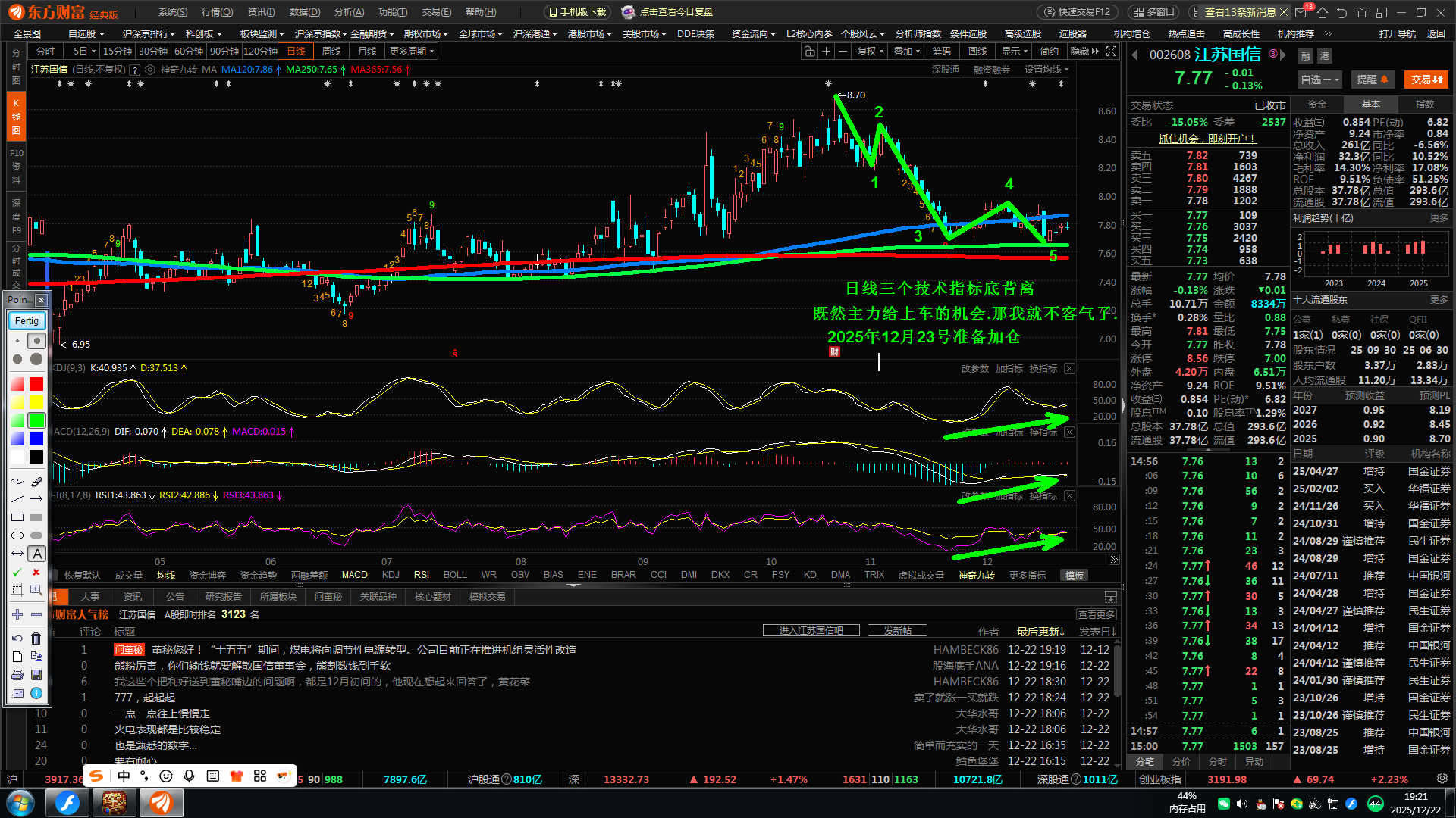 本人决定在2025年12月23号继续加仓.加仓价格在7.75-7.80之间
