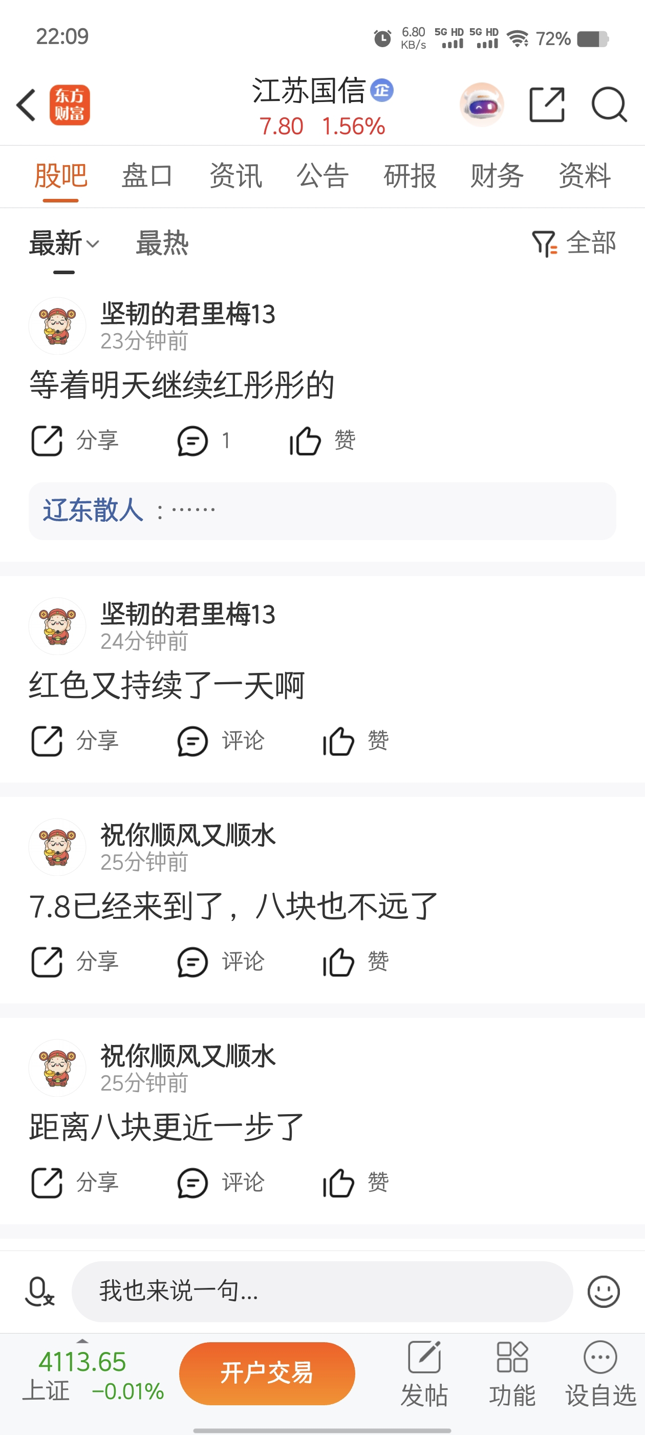 温馨提示: 1.根据《证券法》规定,禁止编造、传播虚假信息或者误导性信息,扰乱证券市场;2.用户在本社区发表的所有资料、言论等仅代表个人观点,与本网站立场无关,不对您构成任何投资建议。用户应基于自己的独立判断,自行决定证券投资并承担相应风险。《东方财富社区管理规定》