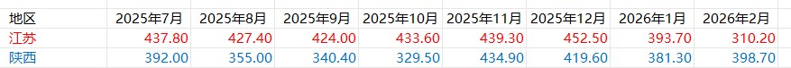 2025年7月-2026年2月各地电网代理购电价格一览表(元/兆瓦时)