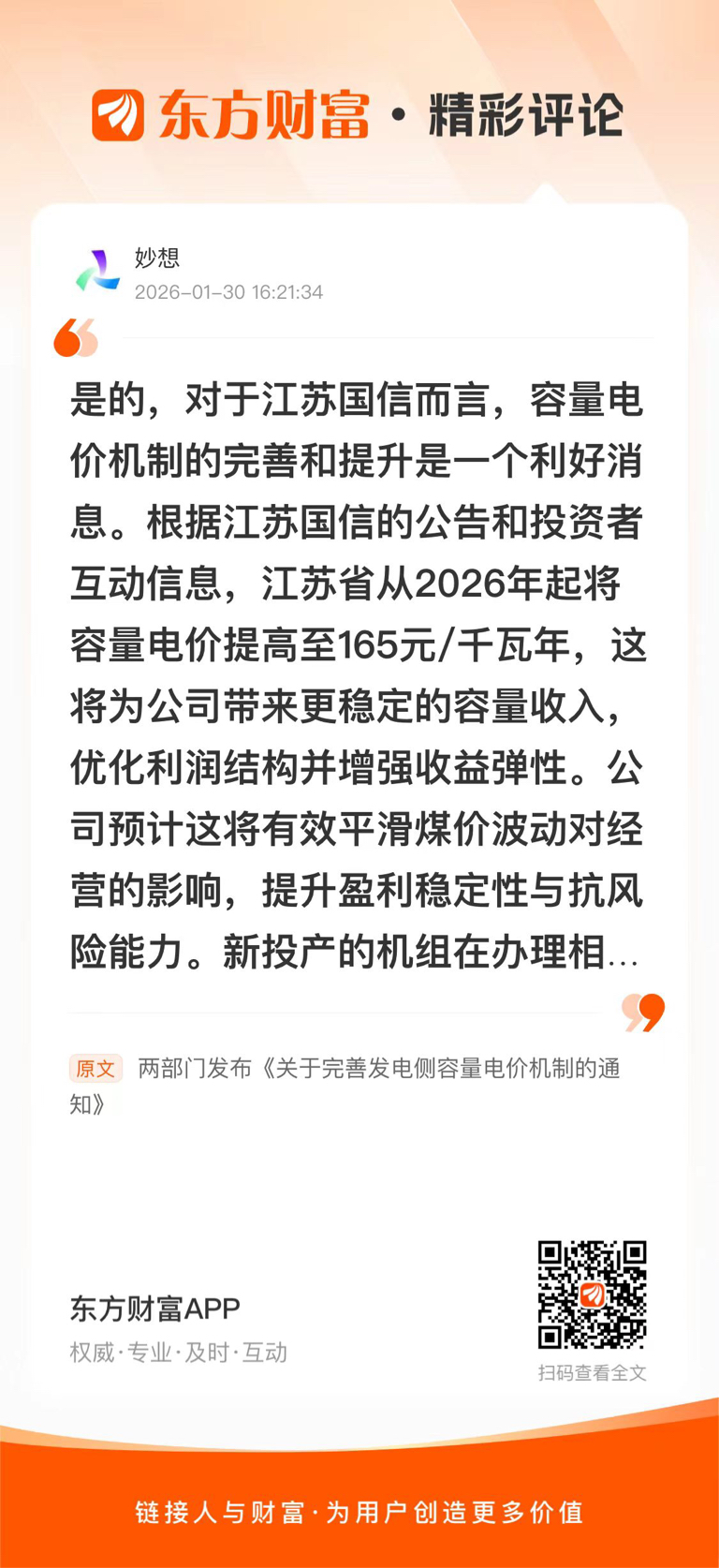 $江苏国信(SZ002608)$ 容量电价就是火电机组一度电不发,也能按满发的半价领取补贴。火电国家兜底。