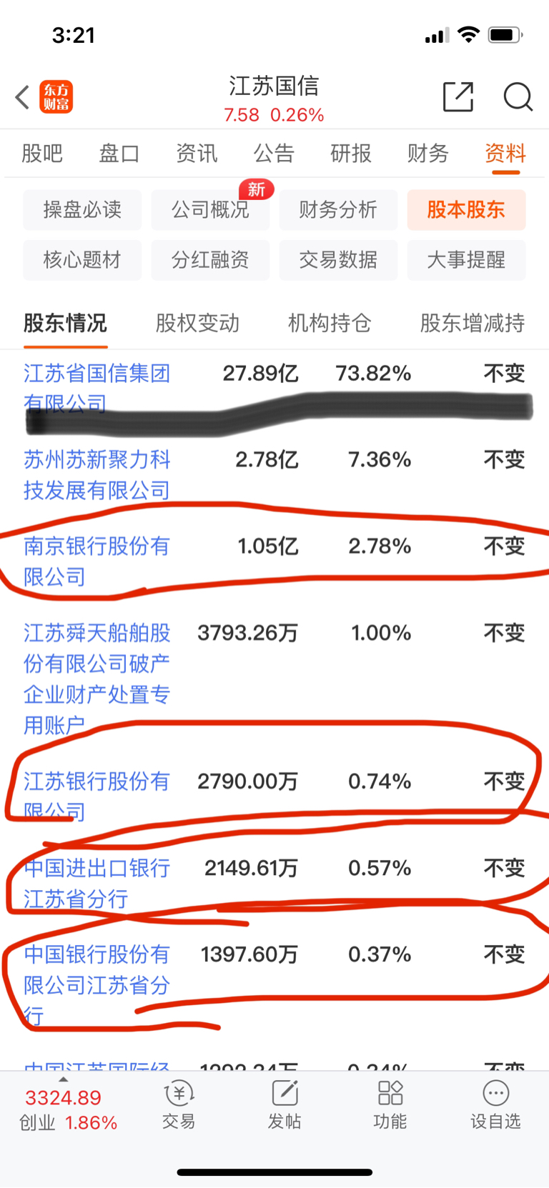 $江苏国信(SZ002608)$ 大股东不靠股票吃饭,你拉股价他们不配合你还说不定配合监管制裁你,发公告否定你。再看看这些银行,全是舜天破产被迫债转股的,大股东二股东都想便宜收他们的货,你拉起来他们也是不同意的。这就是月线看没有一次像样上涨的原因吧。。