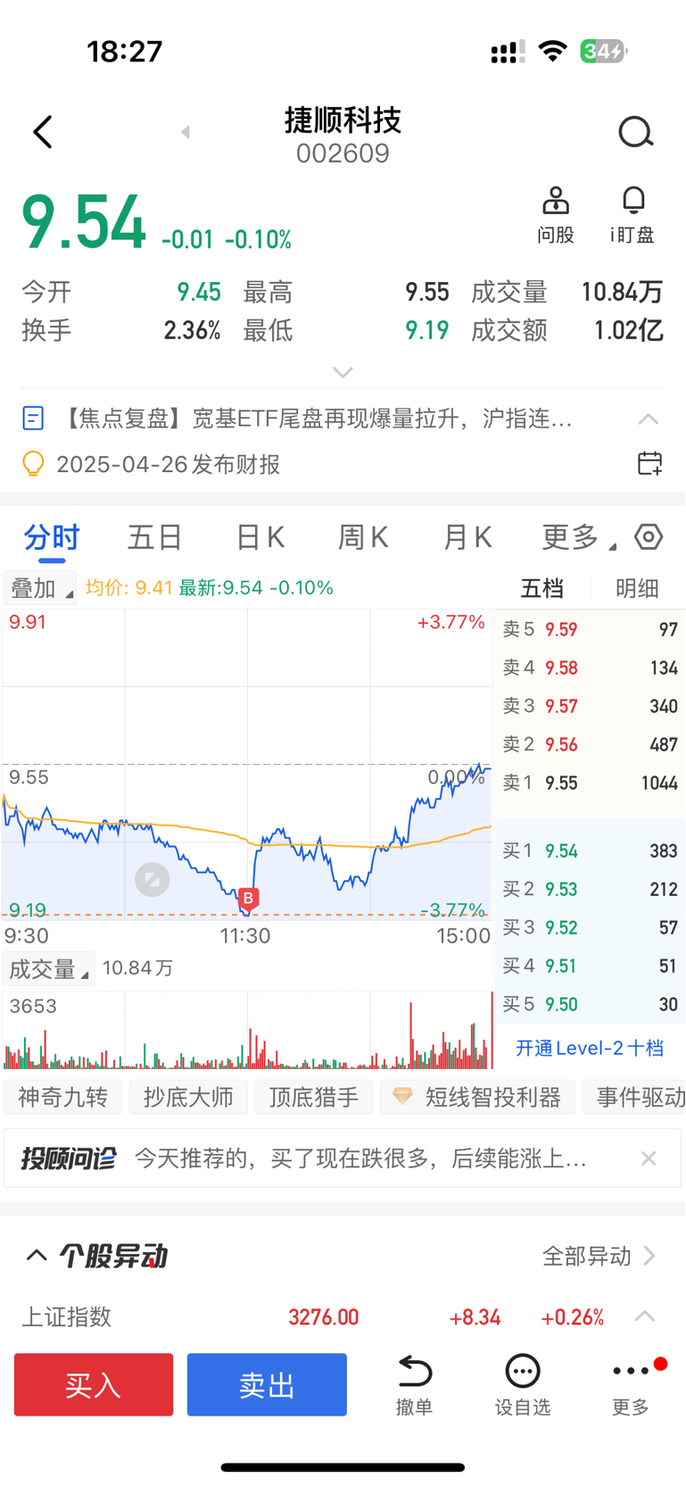 $捷顺科技(SZ002609)$ 精准抄底
