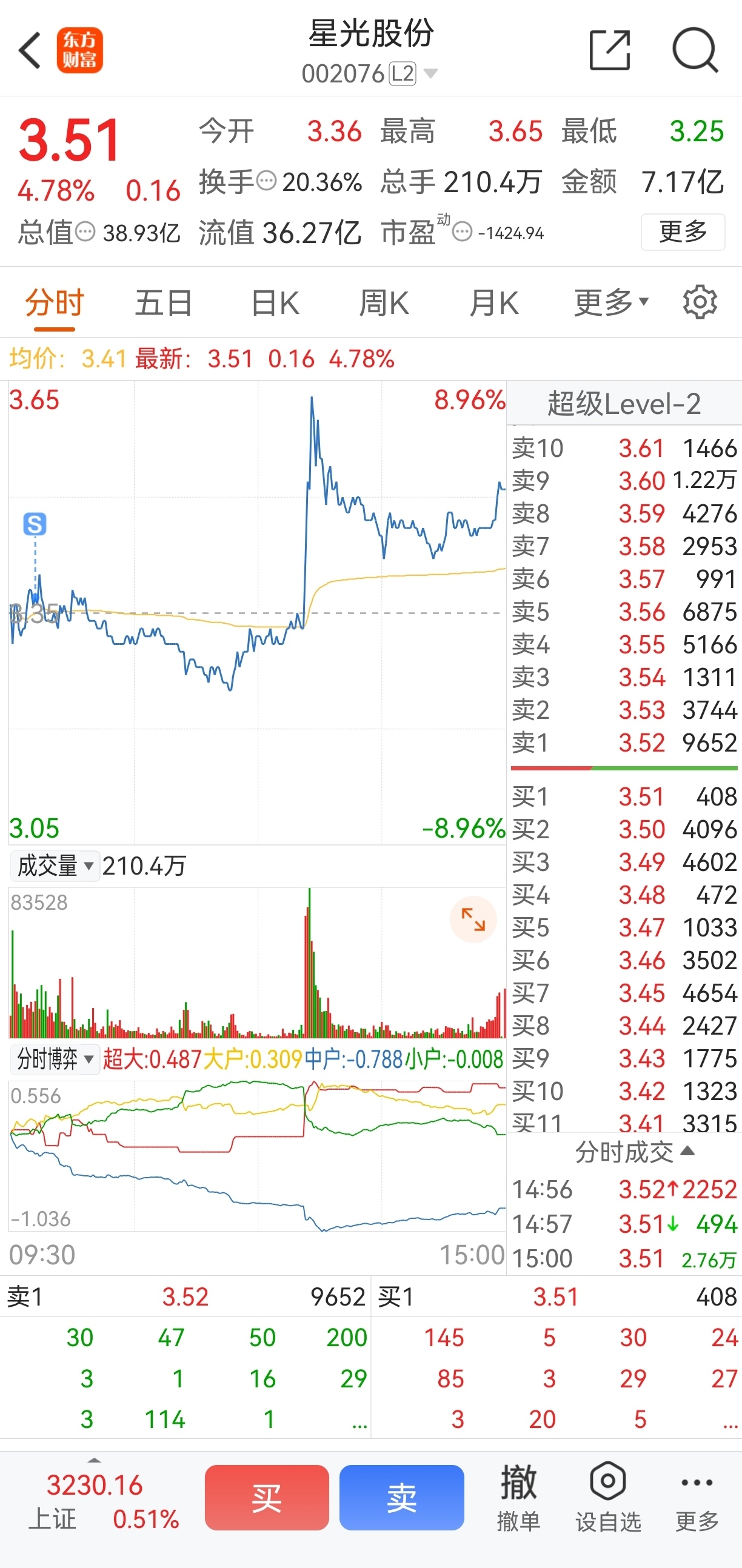 $星光股份(SZ002076)$ 开盘上攻无力,一直冲不上去,就获利出局了。没想到下午直线拉升,这种我是拿不住的,没办法,赚不到这个米。