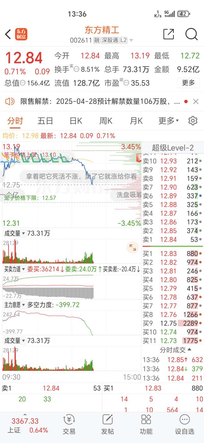 $东方精工(SZ002611)$ 这个位置卖单这么多?散户?