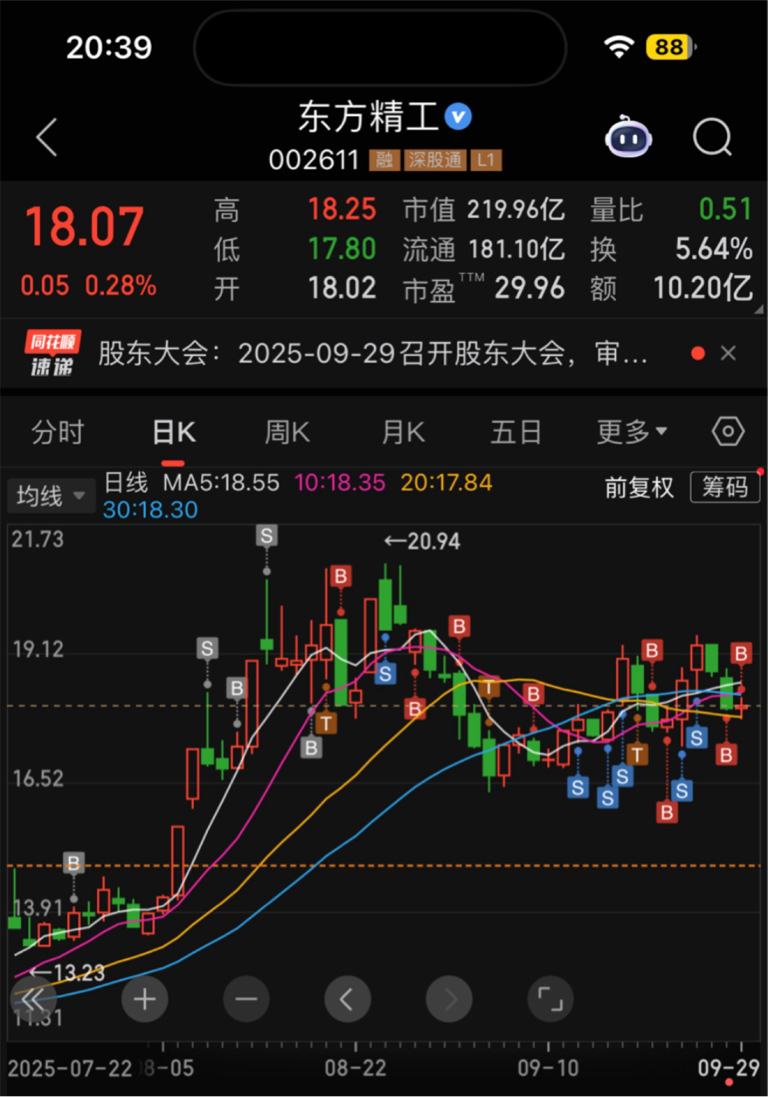 $东方精工(SZ002611)$ 明天开盘如果低开买入好机会,今天压盘太漂亮了,上涨趋势记得做t,下跌是最能做t最舒服的状态