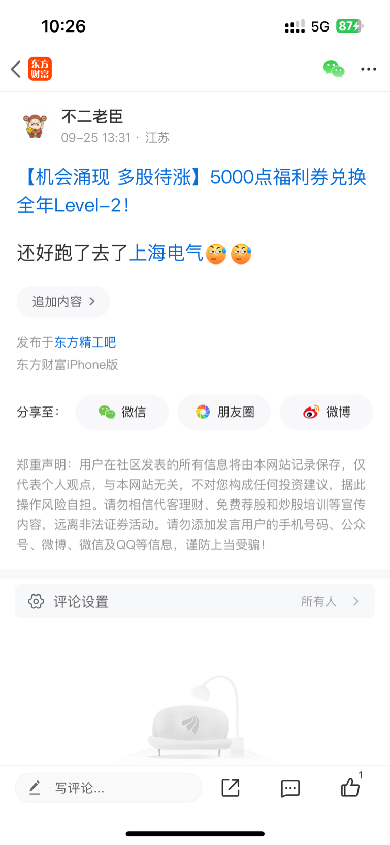 温馨提示: 1.根据《证券法》规定,禁止编造、传播虚假信息或者误导性信息,扰乱证券市场;2.用户在本社区发表的所有资料、言论等仅代表个人观点,与本网站立场无关,不对您构成任何投资建议。用户应基于自己的独立判断,自行决定证券投资并承担相应风险。《东方财富社区管理规定》