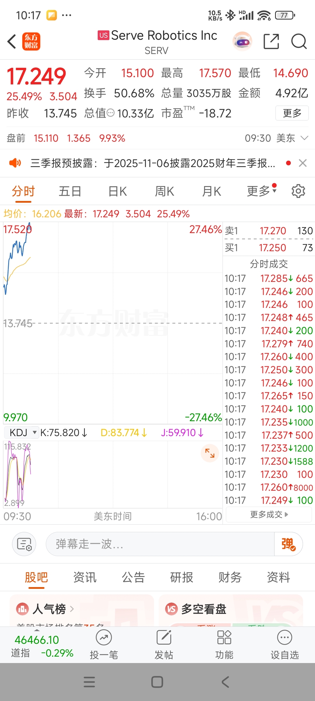 $东方精工(SZ002611)$ 美股智能物流机器人公司serve大涨