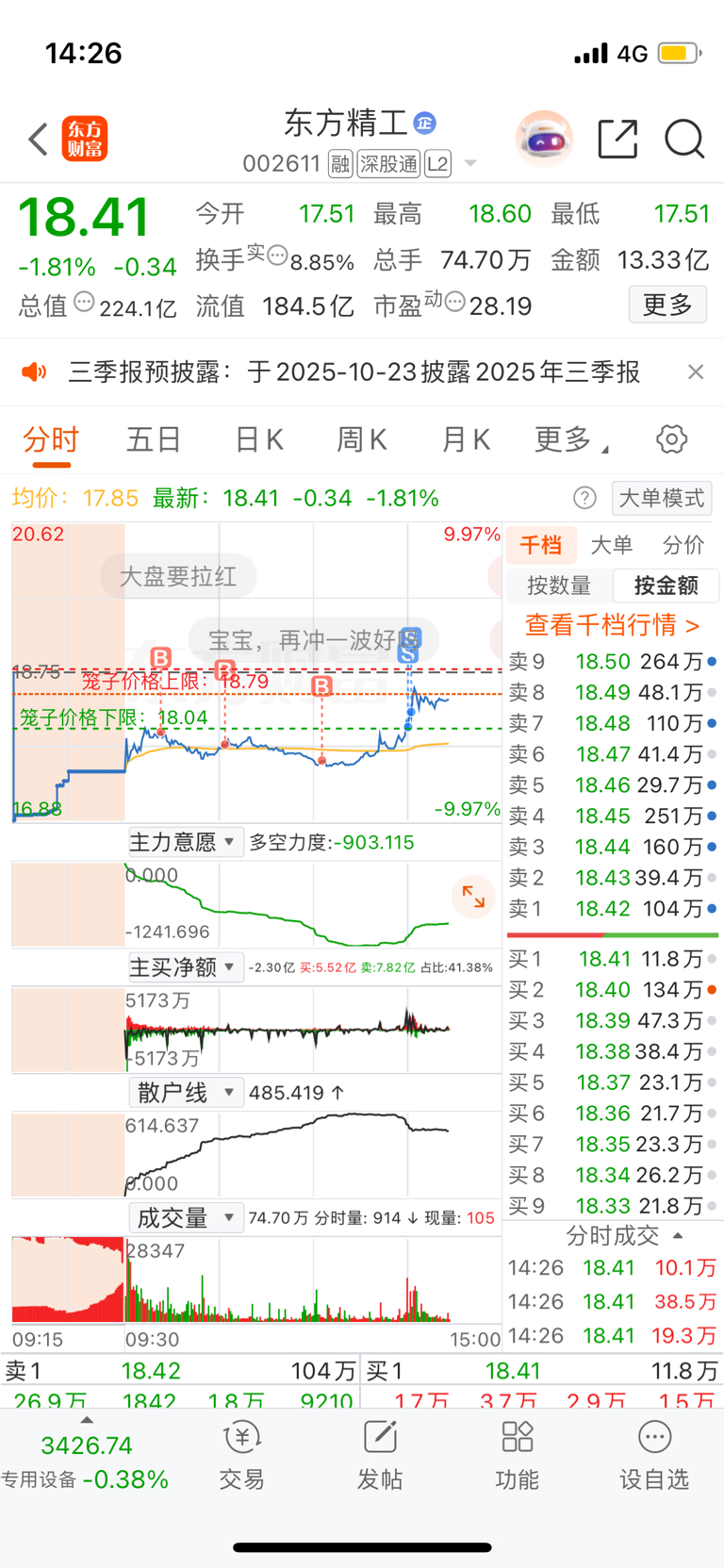 $东方精工(SZ002611)$ 来个神奇两点半吧,主力,我不卖了