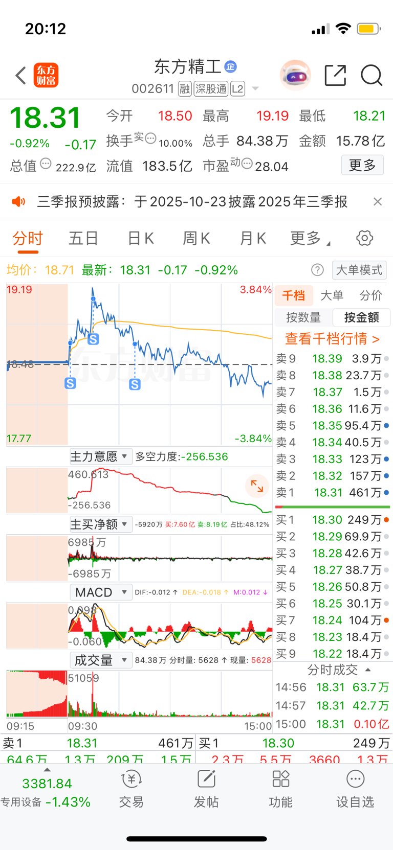 $东方精工(SZ002611)$ 早盘连底仓都清了,尾盘的时候看大盘走成这样,不敢接回来