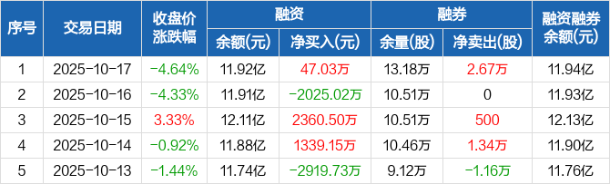 东方精工:融资净买入47.03万元,融资余额11.92亿元(10-17)