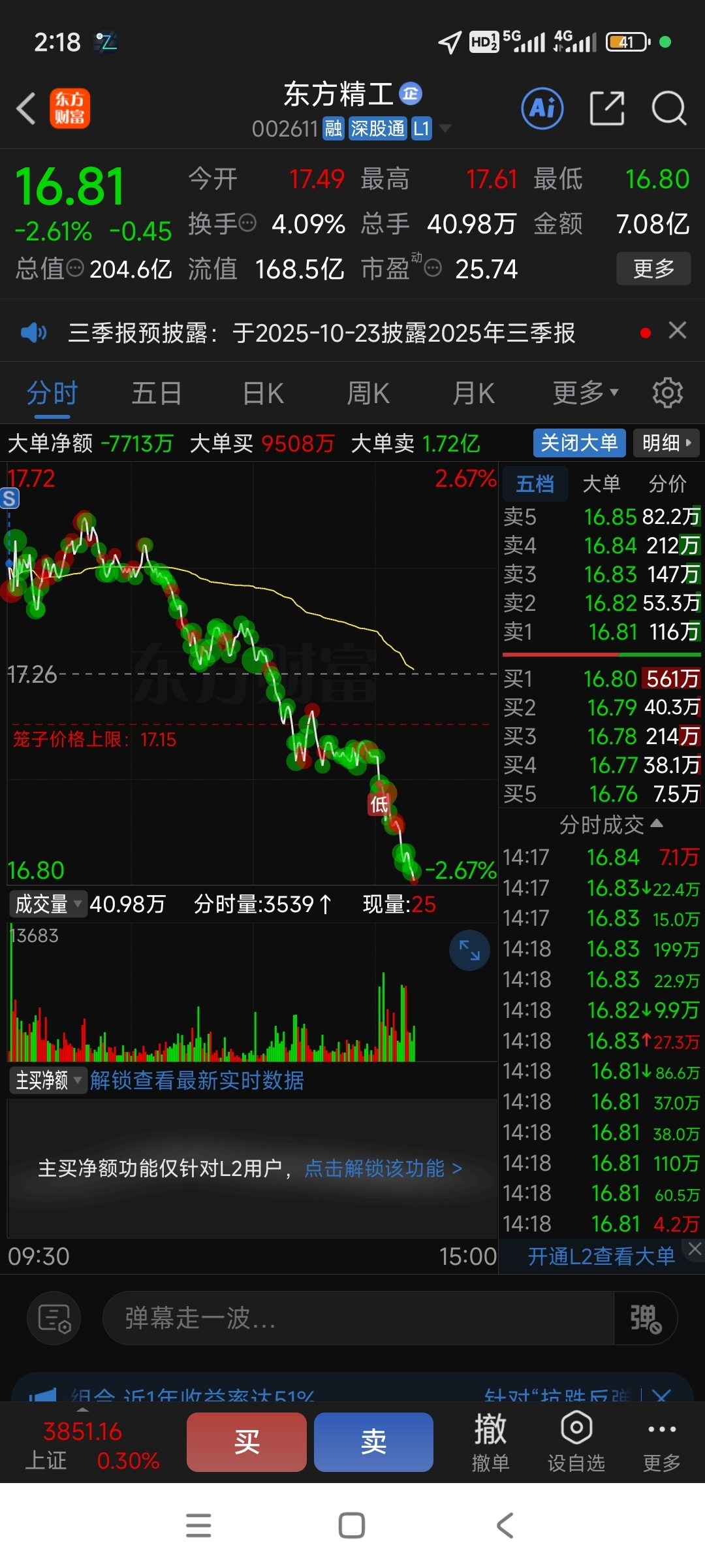 $东方精工(SZ002611)$ 还好开盘就跑了,以为跑错了
