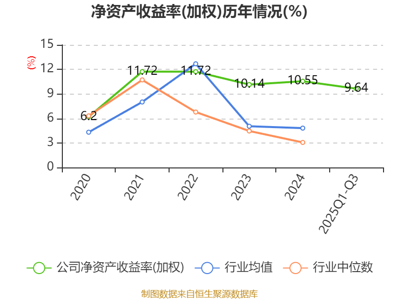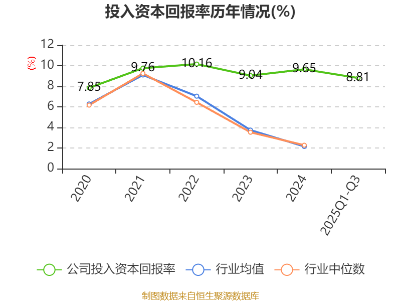 盈利能力方面, 2025年前三季度公司加权平均净资产收益率为9.64%,同比上升2.58个百分点。公司2025年前三季度投入资本回报率为8.81%,较上年同期上升2.52个百分点。
