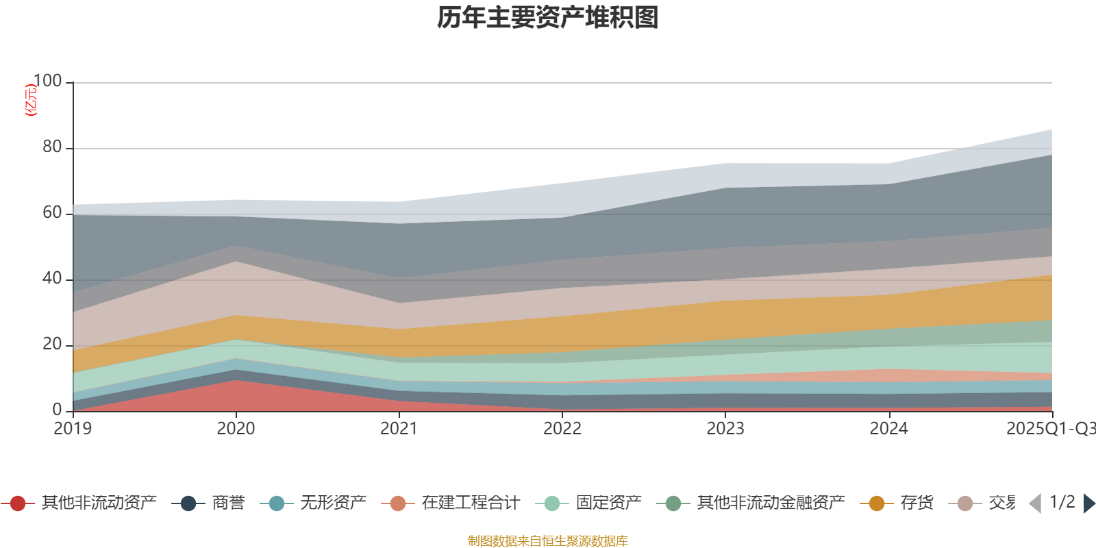 资产重大变化方面,截至2025年三季度末,公司交易性金融资产合计较上年末减少29.55%,占公司总资产比重下降3.98个百分点;货币资金较上年末增加28.49%,占公司总资产比重上升2.99个百分点;在建工程合计较上年末减少45.79%,占公司总资产比重下降2.81个百分点;存货较上年末增加34.44%,占公司总资产比重上升2.5个百分点。