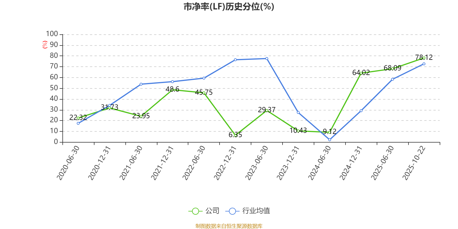 市盈率、市净率为负时,不显示当期分位数,会导致折线图中断。