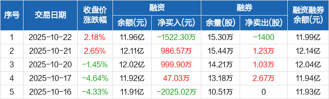 东方精工:融资净偿还1522.3万元,融资余额11.96亿元(10-22)