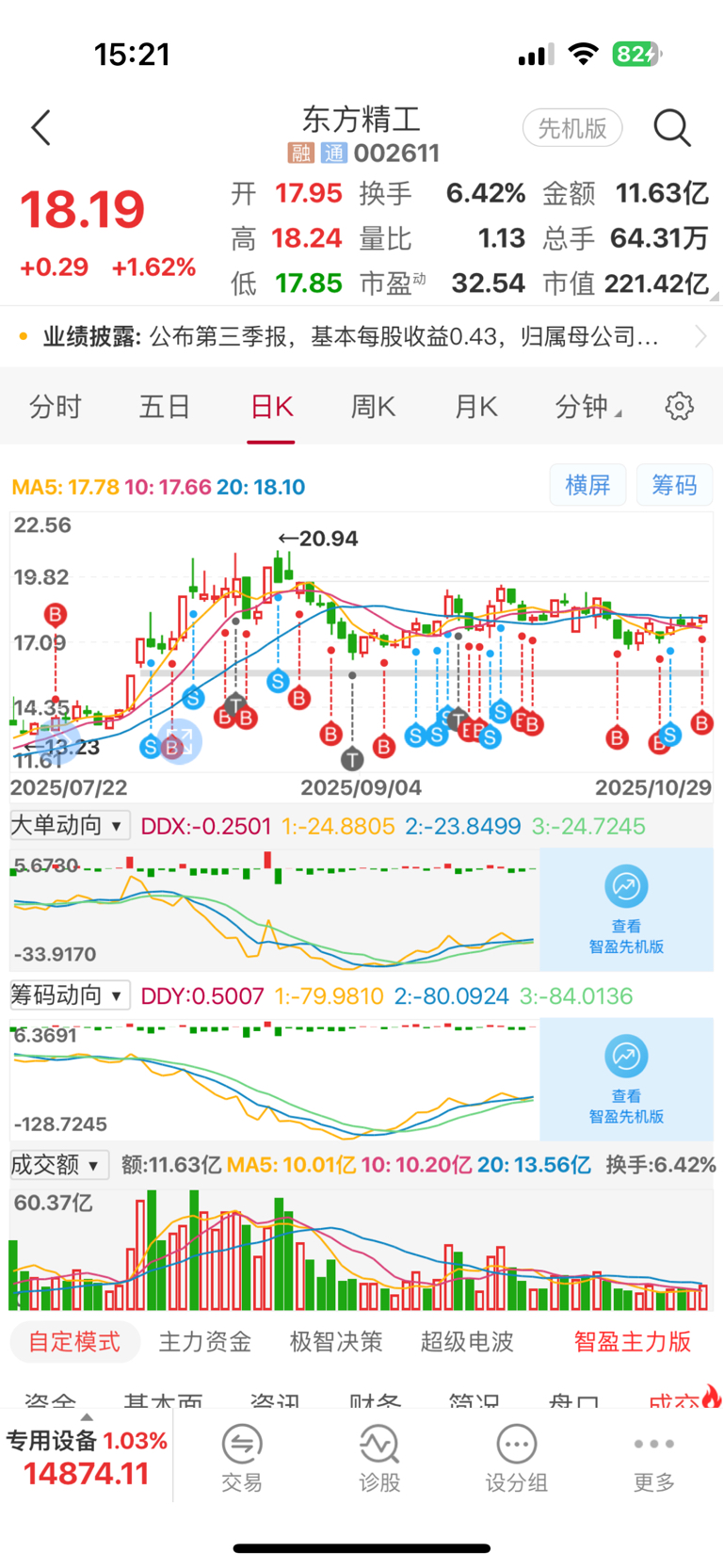 $东方精工(SZ002611)$ 明天不管涨跌都是机会