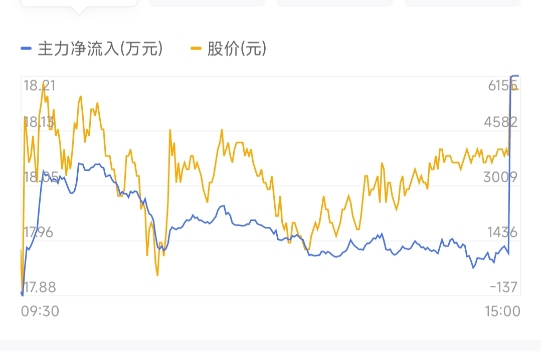 仅尾盘2分钟,主力资金净流入增加了约5000万元!应该说把今天挂在18.10~1