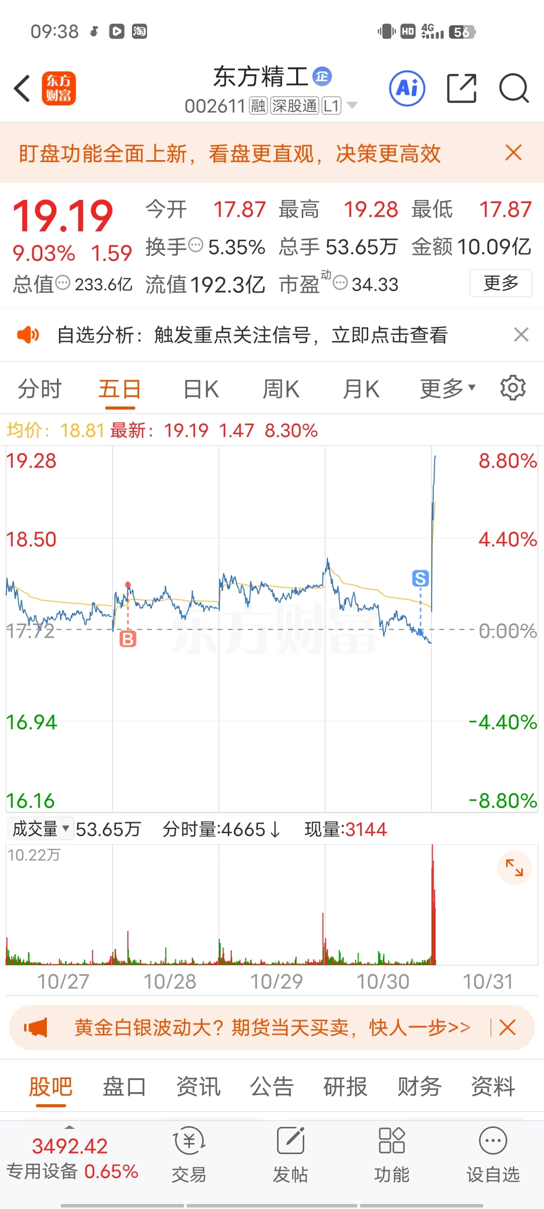 $东方精工(SZ002611)$ 服气,元份没到