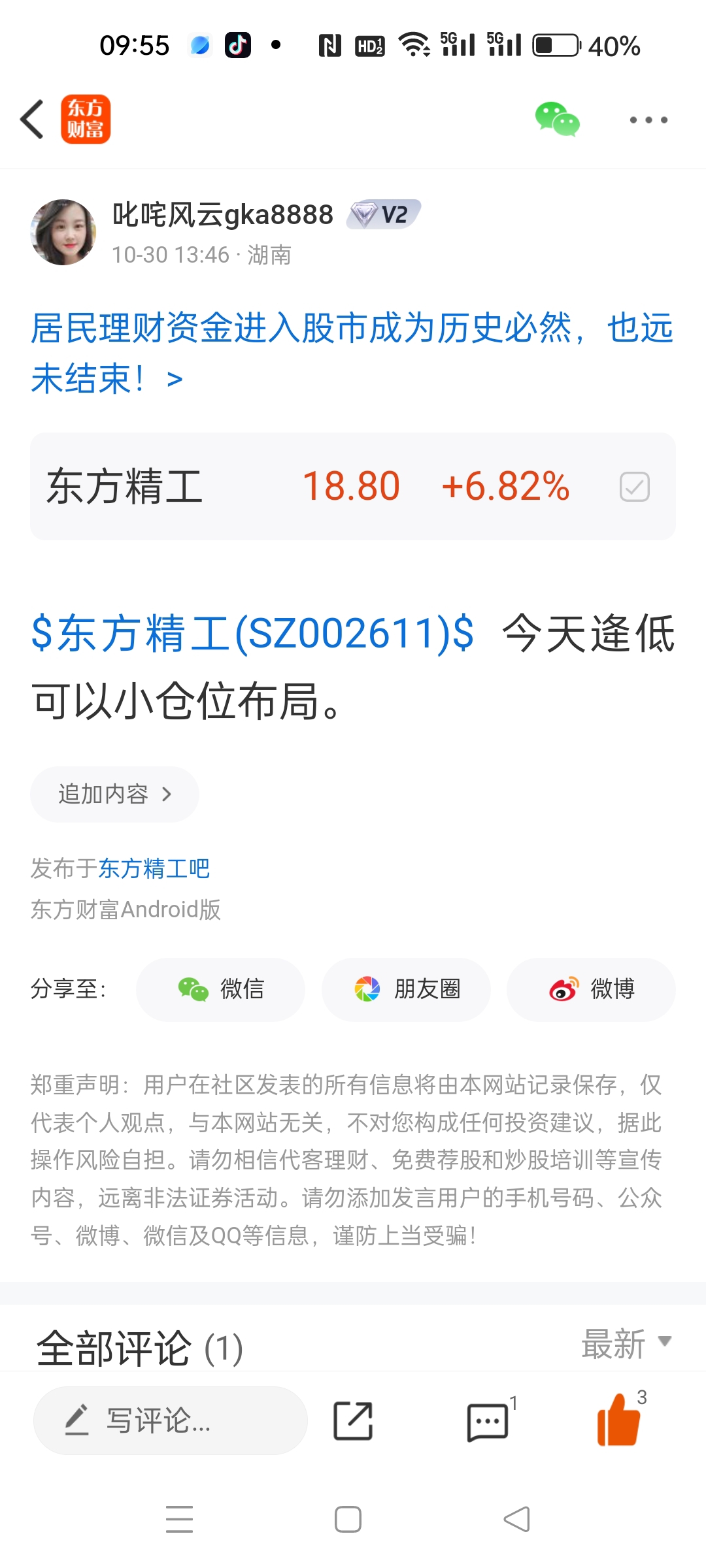 温馨提示: 1.根据《证券法》规定,禁止编造、传播虚假信息或者误导性信息,扰乱证券市场;2.用户在本社区发表的所有资料、言论等仅代表个人观点,与本网站立场无关,不对您构成任何投资建议。用户应基于自己的独立判断,自行决定证券投资并承担相应风险。《东方财富社区管理规定》