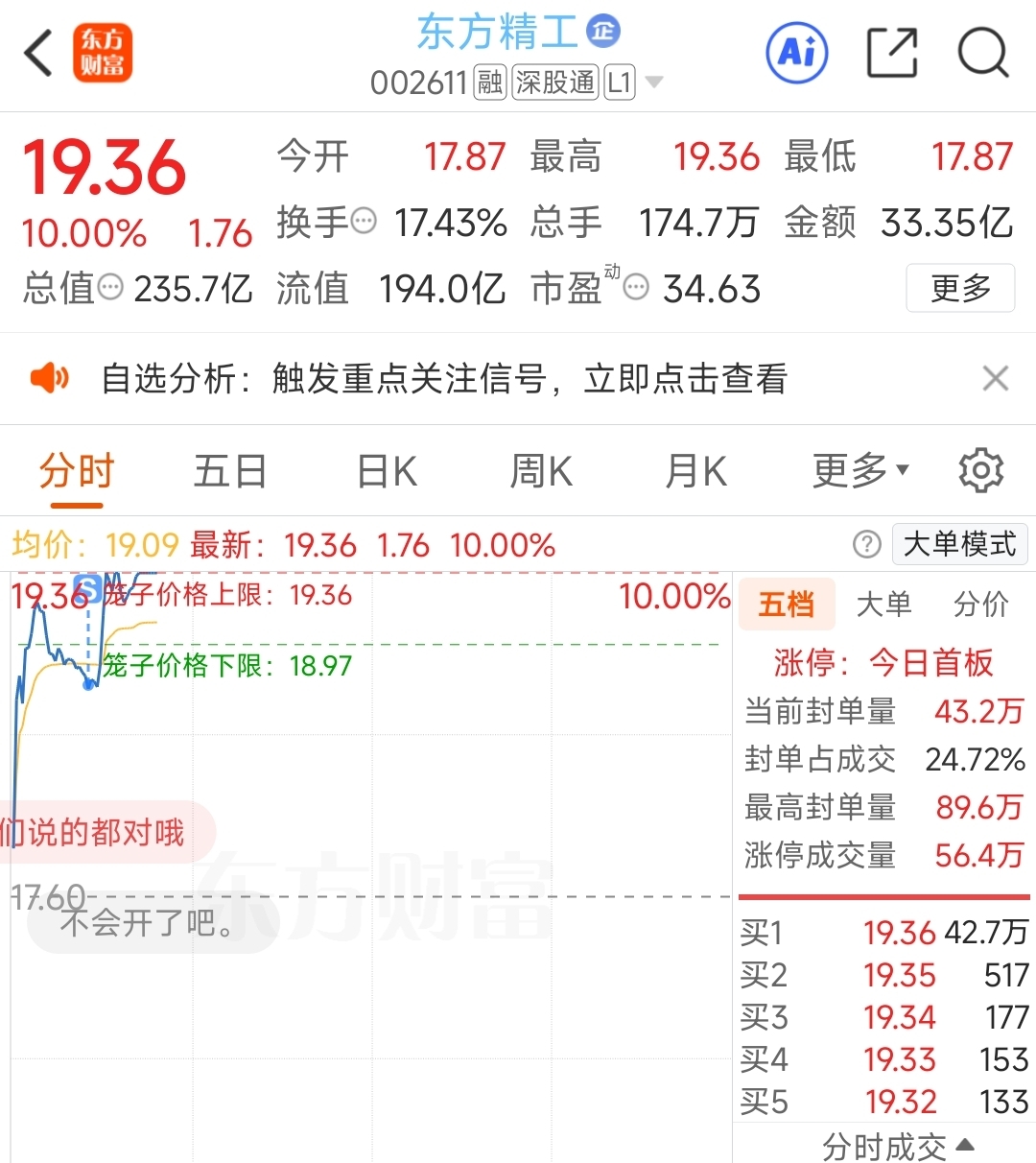 $东方精工(SZ002611)$ 我不甘心,我希望开板