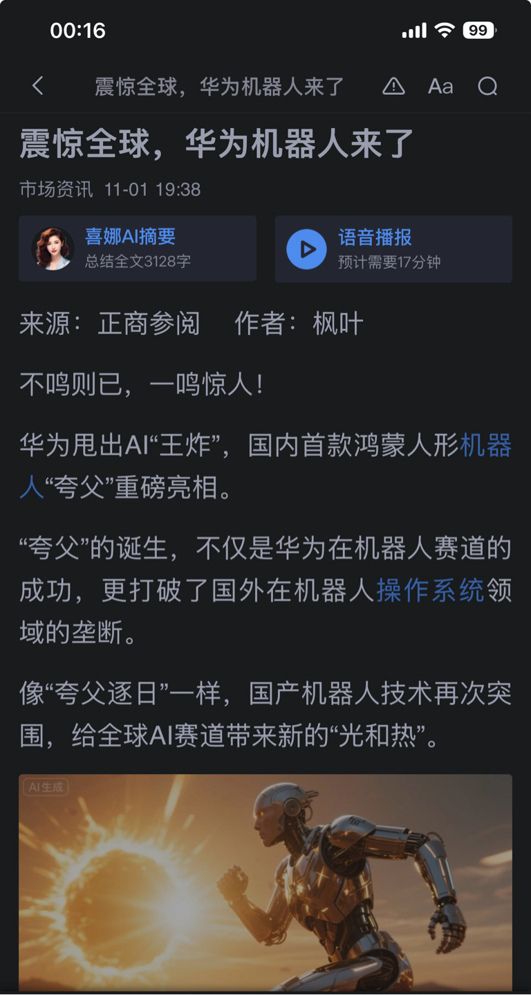 $东方精工(SZ002611)$ 东方精工通过宁波君润科胜基金控股乐聚机器人。乐聚机器人与华为合作开发了搭载盘古大模型和鸿蒙系统的“夸父”机器人。乐聚机器人还将“夸父”机器人接入华为鸿蒙生态,实现智能家居跨设备控制,并且在一汽红旗工厂的应用中,华为提供了5G-A通信支持。周一要起飞了!