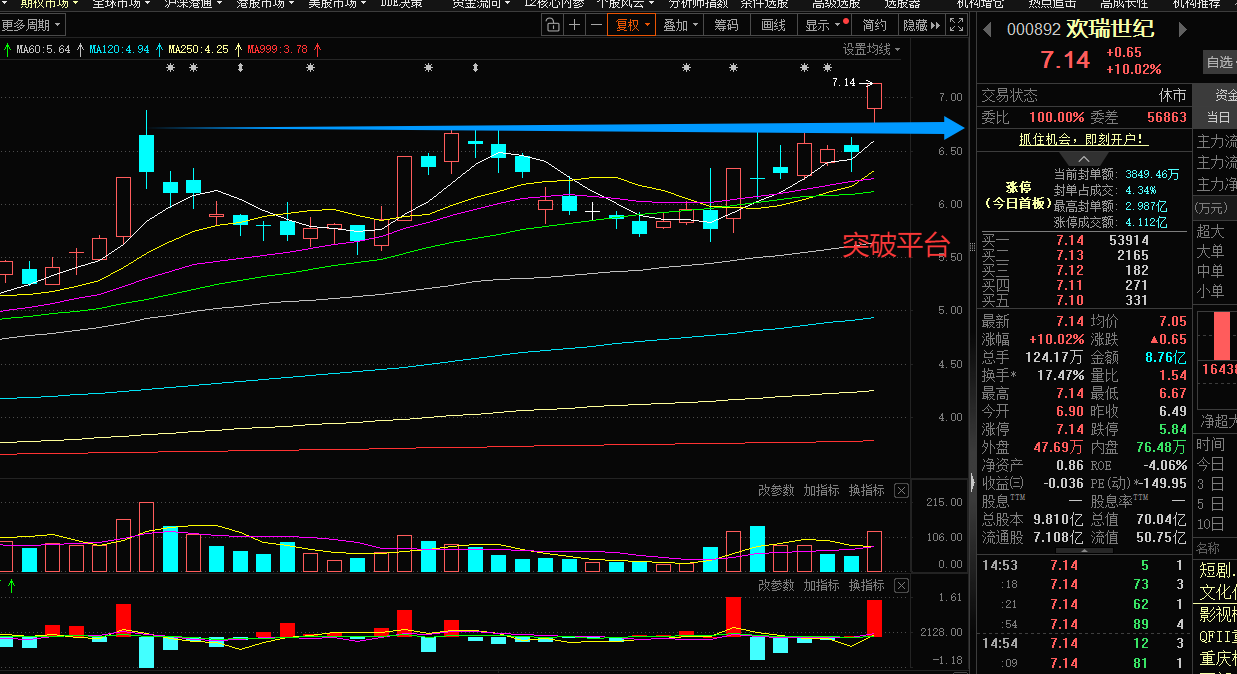 欢瑞世纪:广电总局“21条”新政取消集数限制,激活市场对影视公司产能释放的预期。Z策发布后影视板块Z金净流入超百亿,欢瑞世纪作为头部制作公司,自然成为Z金配置标的。另外,欢瑞的业绩也相当给力,2025年前三季度营业收入同比增长123.30%,第三季度收入同比增长216.90%,技术走势来说也刚好突破了之前的震荡平台,老k觉得如果给回踩机会可以低吸,如果直接高开则不追,市场机会很多,咱们要做确定性高的交易。