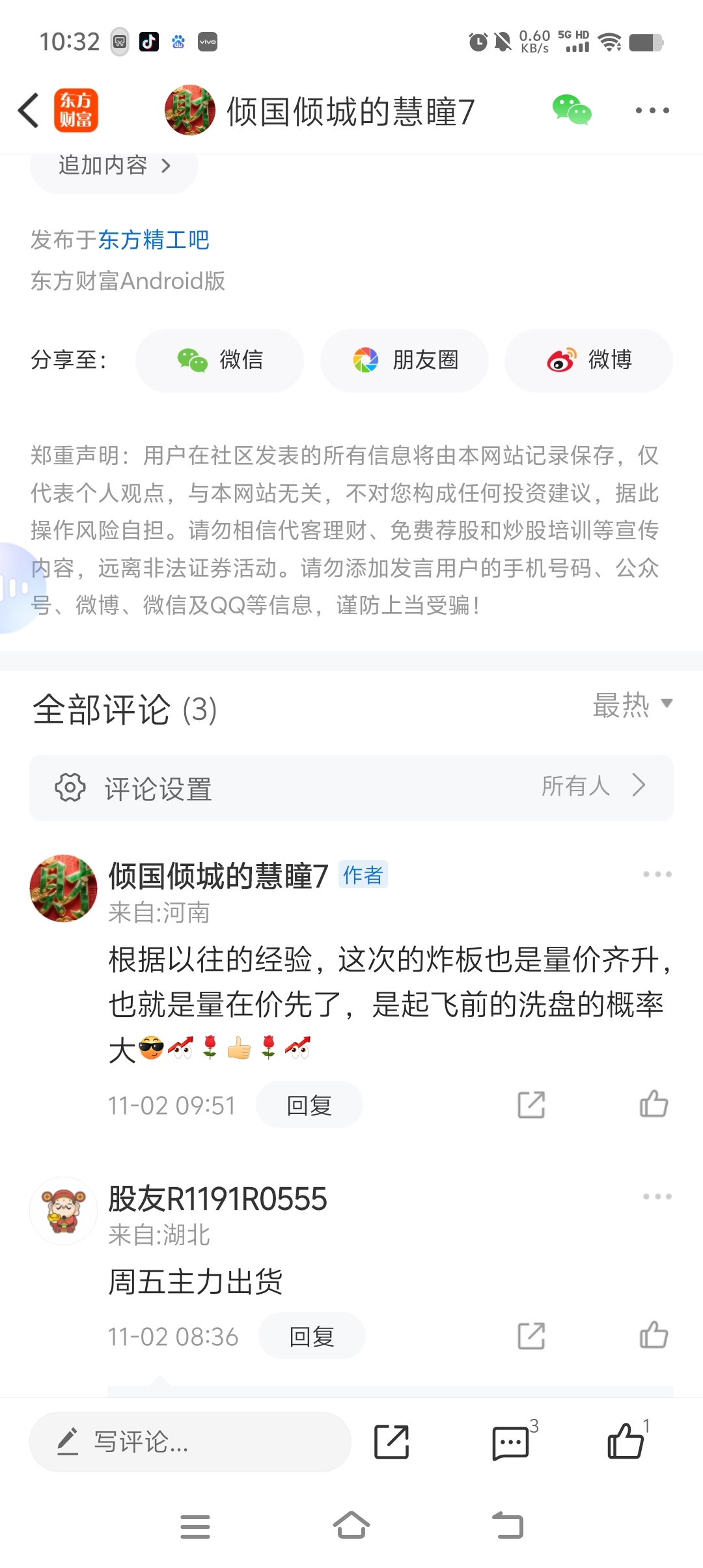 温馨提示: 1.根据《证券法》规定,禁止编造、传播虚假信息或者误导性信息,扰乱证券市场;2.用户在本社区发表的所有资料、言论等仅代表个人观点,与本网站立场无关,不对您构成任何投资建议。用户应基于自己的独立判断,自行决定证券投资并承担相应风险。《东方财富社区管理规定》