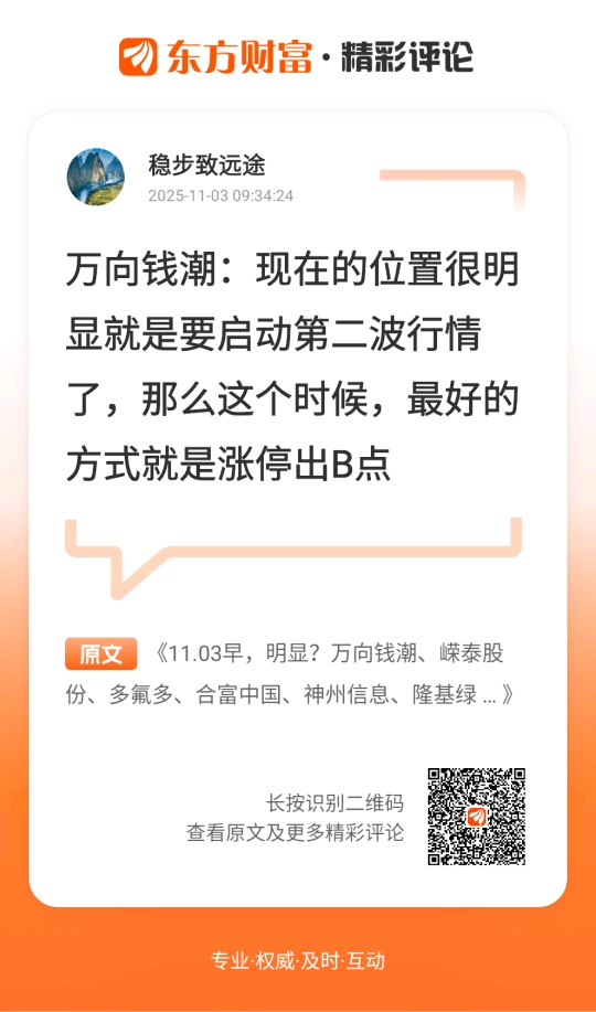 万向钱潮:周五个股出现了早盘跳空向上以后收出涨停板的走势,目前来说,这一轮的前面连续涨停板的走势里当中,就已经反馈了个股这一轮的行情绝不简单。虽然上一轮的炒作里面有固态电池的驱动,有机器人的因素,走出了连续的两波上升,但随后线路的调整的情况,而从公司基本面反馈则是,目前公司是在人形机器人、低空飞行和无人机方面。公司的电池都是有所涉猎,并且可以应用在其中区域,其次则是公司的轴承产品给相关的机器人的客户送样,有望进入相应的供应链,所以相对题材较多。而这一轮的在经过了一轮修整以后,反身向上的走势也是非常的明显,这一轮的上升通道来说,非常的强势运行,而且连续的走出了连阳线。回踩以后再次涨停板,跳空向上,业绩并没有太大明显改善的情况之下,走出这个走势,就说明里面的资金想借着这一轮市场线路调整情况之下,发动一轮行情,走一波主线浪的趋势。