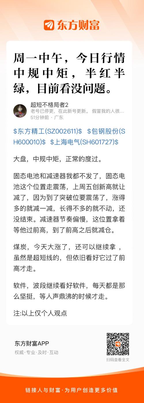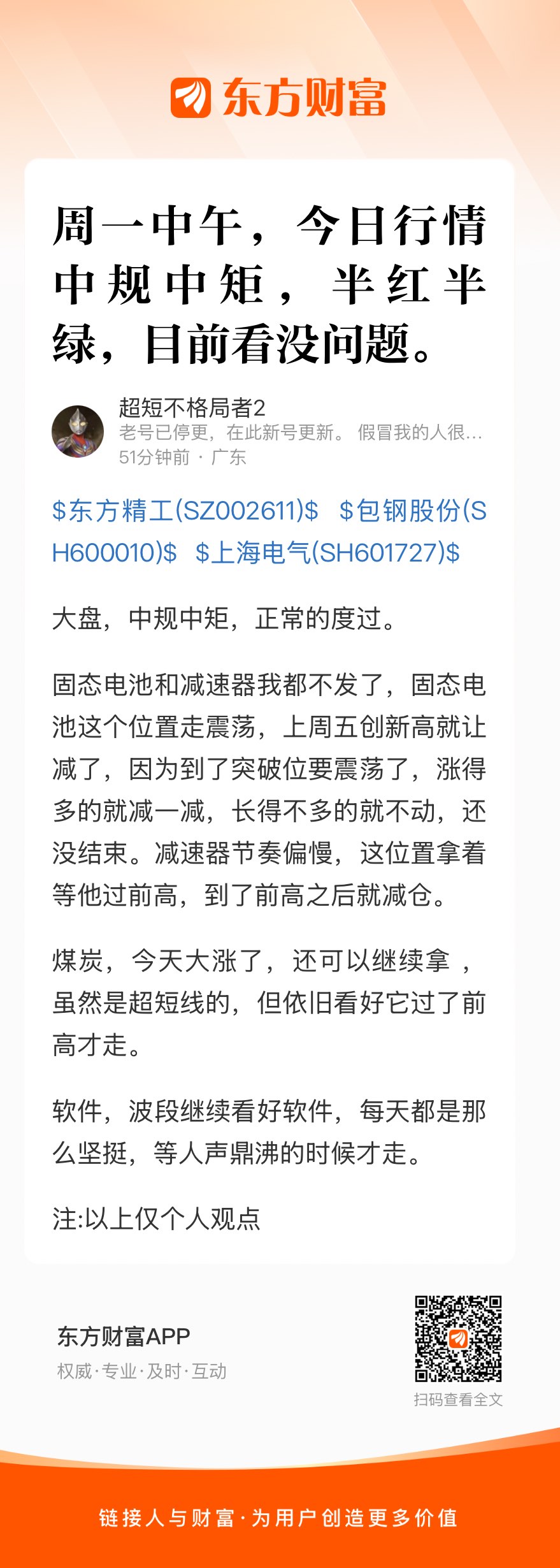 $东方精工(SZ002611)$ $包钢股份(SH600010)$ $上海电气(SH601727)$