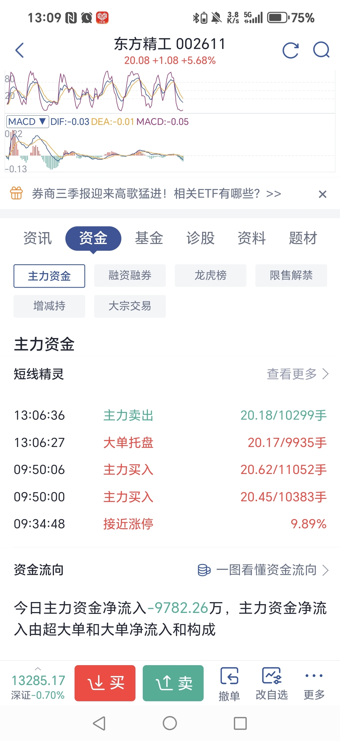 $东方精工(SZ002611)$ 托单必跌还真是,以为盘整两个月,会起来呢,还是老套路,拉高走低哟,回回被骗