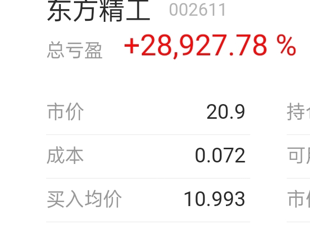 $东方精工(SZ002611)$ 谁有我低