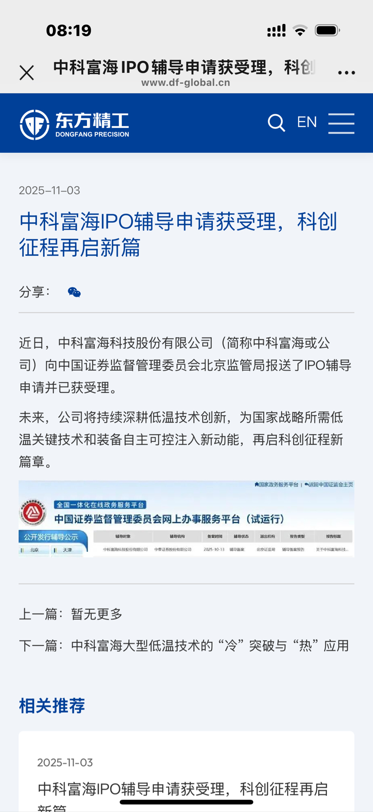 $东方精工(SZ002611)$ 参股公司又一个ipo