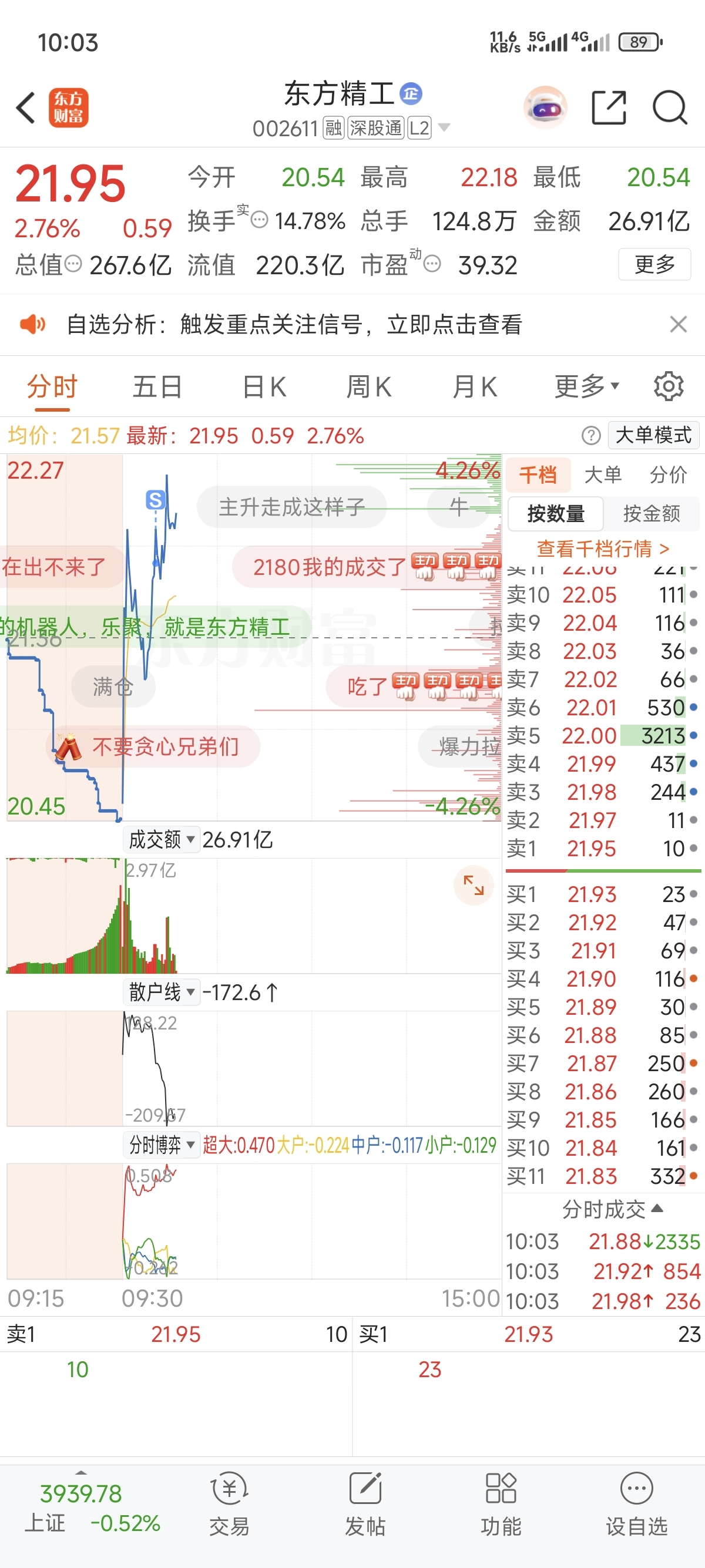 $东方精工(SZ002611)$ 出早了,没想到还能拉