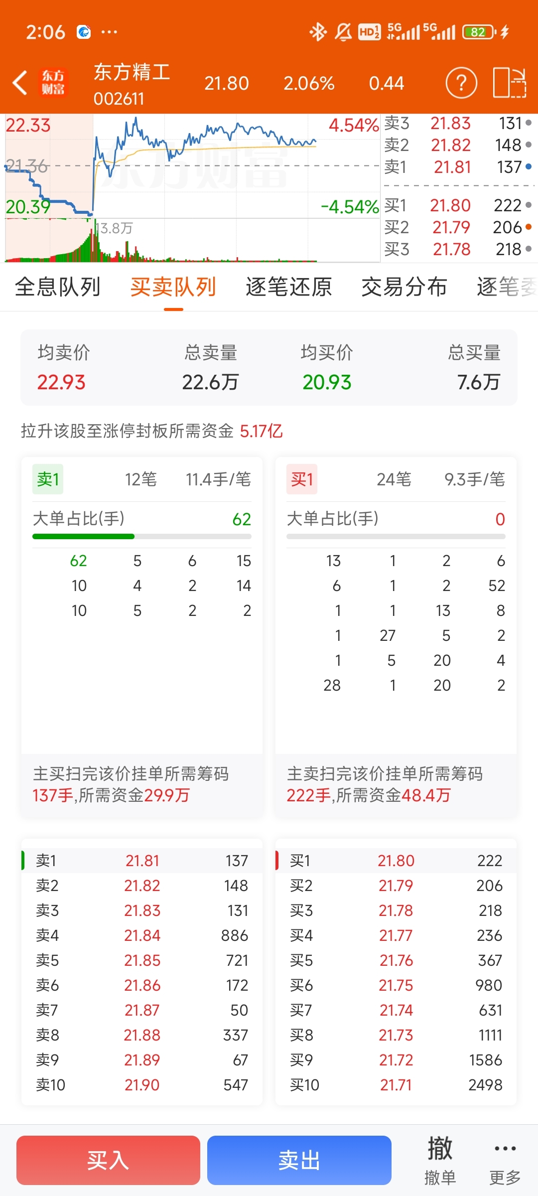 $东方精工(SZ002611)$ 5个亿还能秒吗?