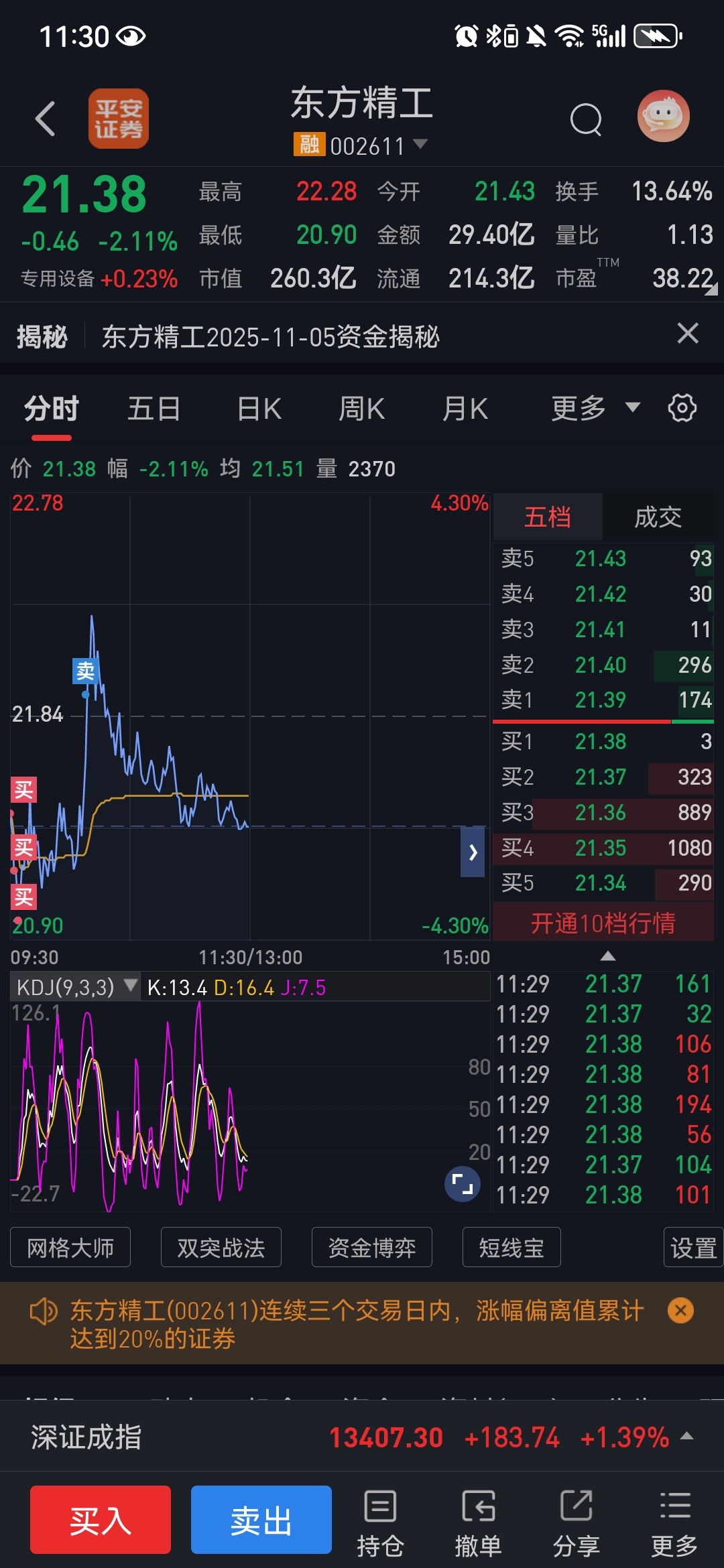 $东方精工(SZ002611)$ 胆子太小了下午再买回来点