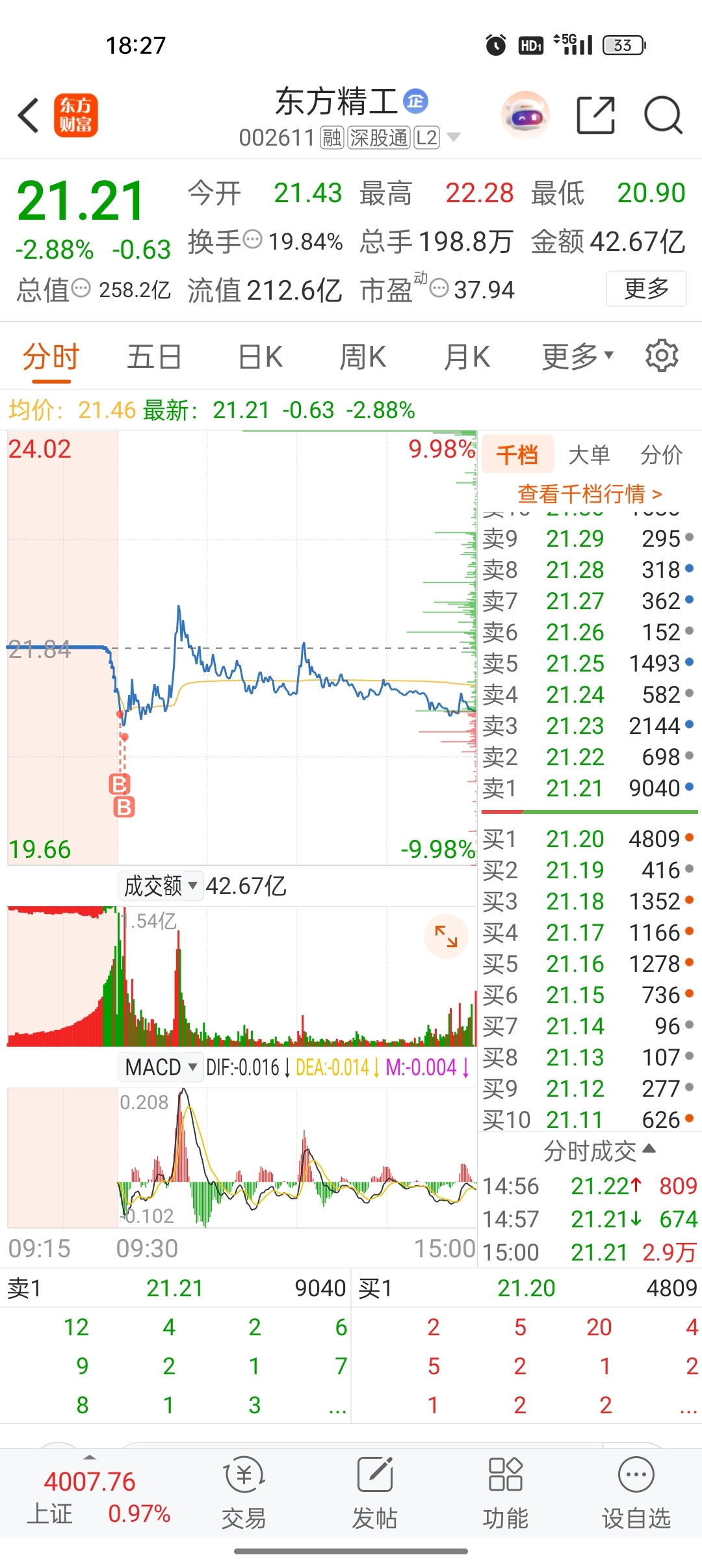 $东方精工(SZ002611)$ 什么意思,感觉今天抄到底了,收盘差点抄我家!明天涨跌就看主力了,既来之,则安之!来都来了我就在说一句:祝各位股友股票长虹