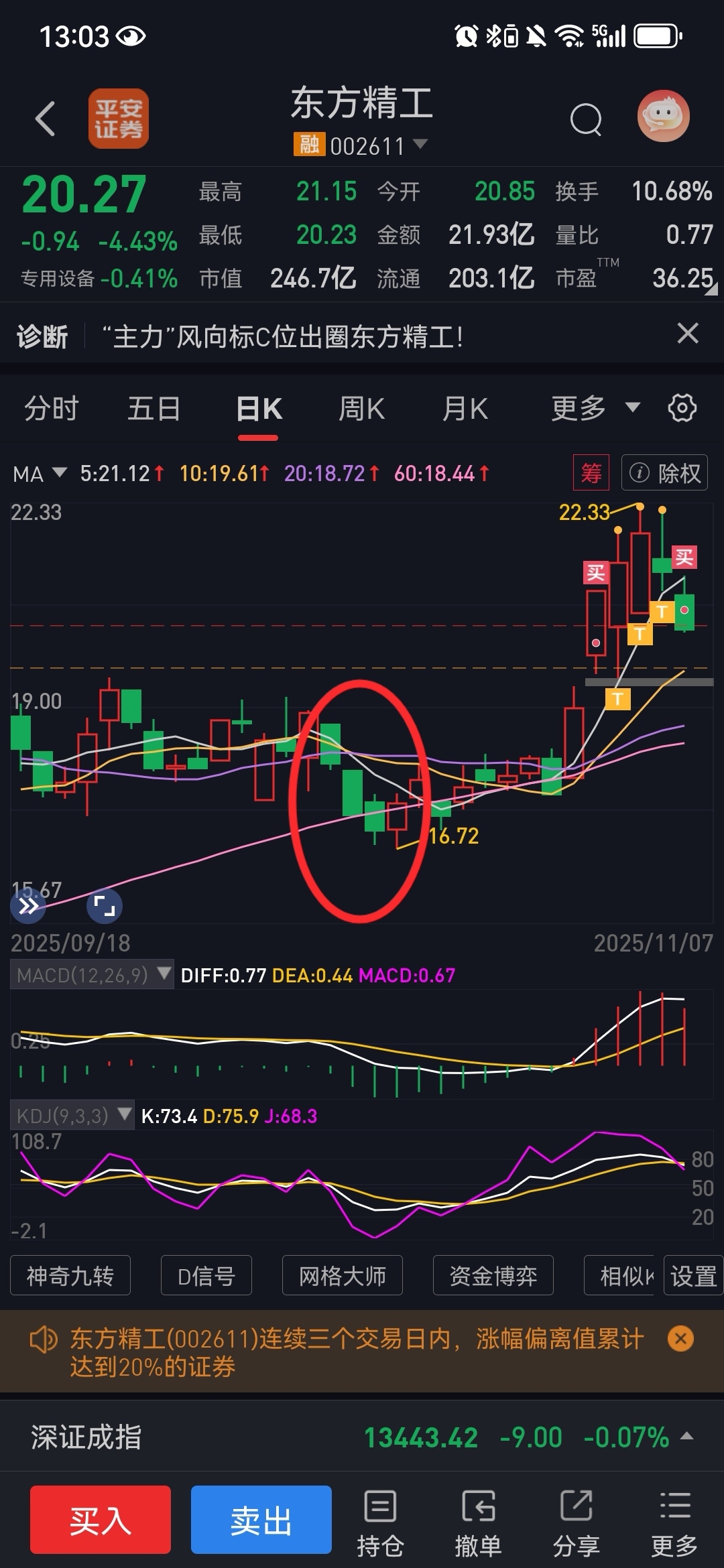 $东方精工(SZ002611)$ 重复16-19号的走势,没底仓的莫追