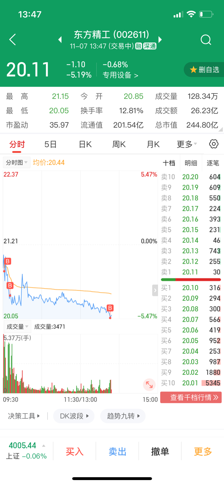 $东方精工(SZ002611)$ 继续跌喂,信邪了