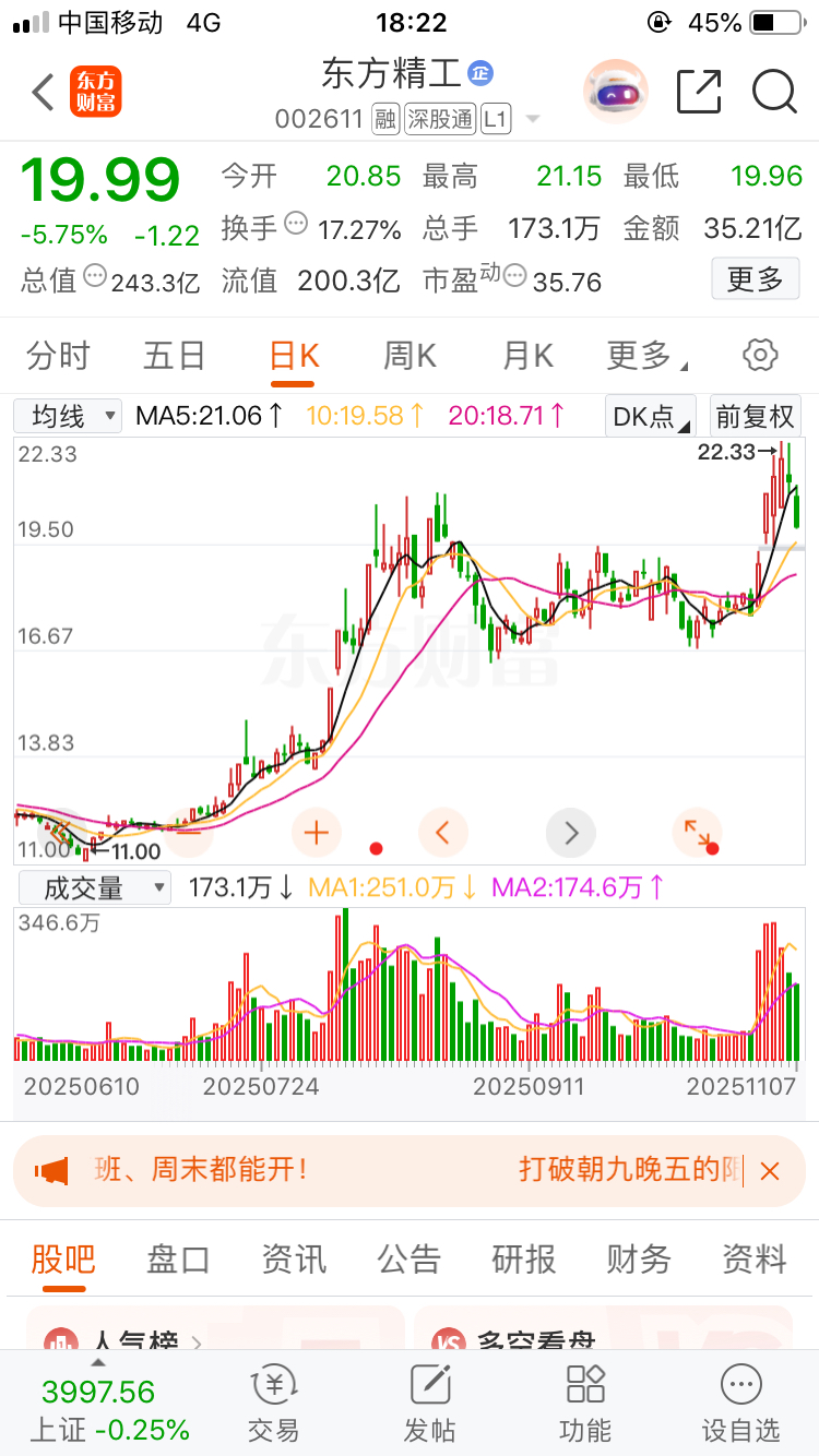 $东方精工(SZ002611)$ 朋友们,就目前东方精工这形态不能追也不能抄,不是所有的票下跌都能抄,莫贪便宜,便宜没好货,这票走废了。