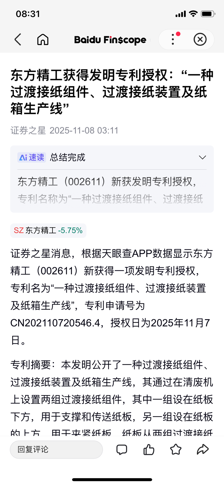 $东方精工(SZ002611)$ 又发明一项专利,不知道能否能够止跌企稳