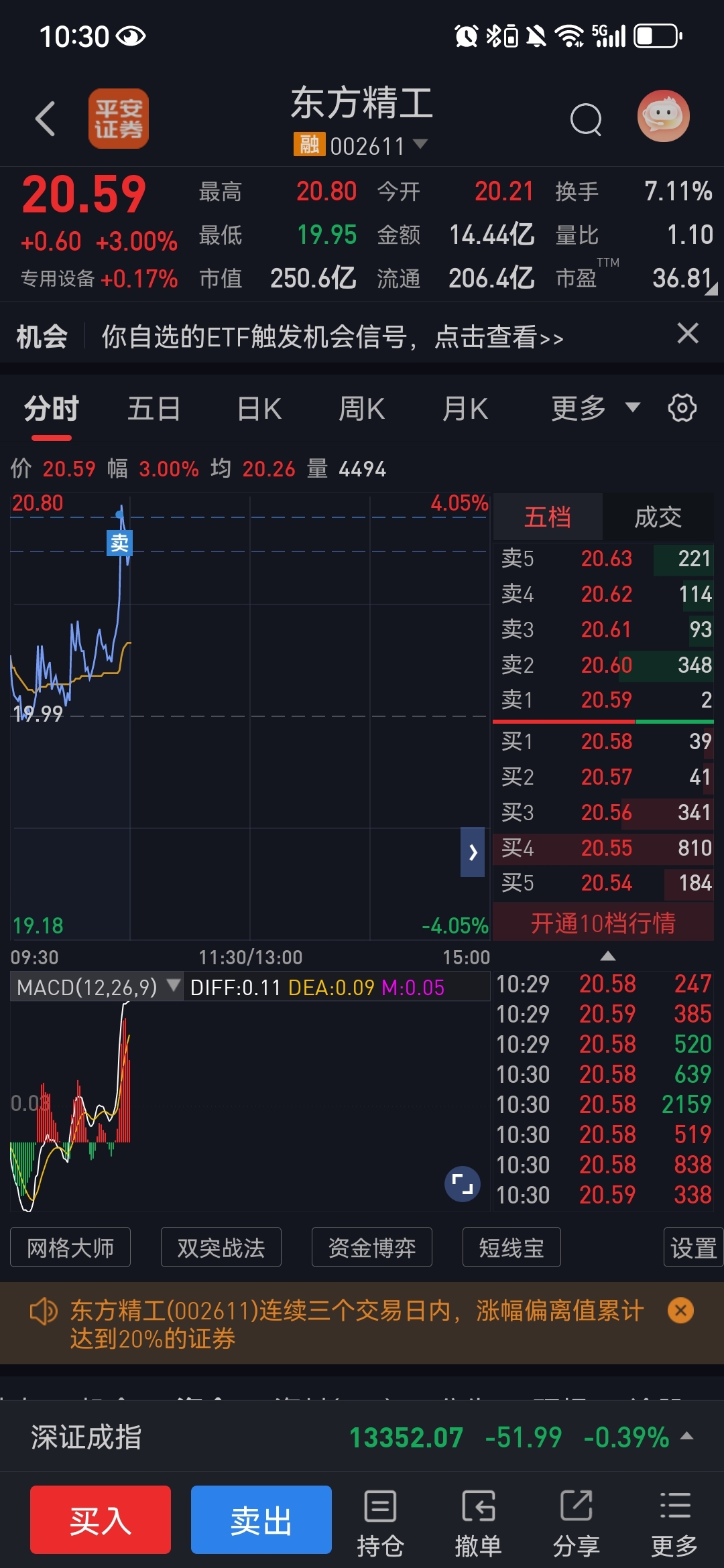 $东方精工(SZ002611)$ 不下探没进,高抛一下看看能不能低接