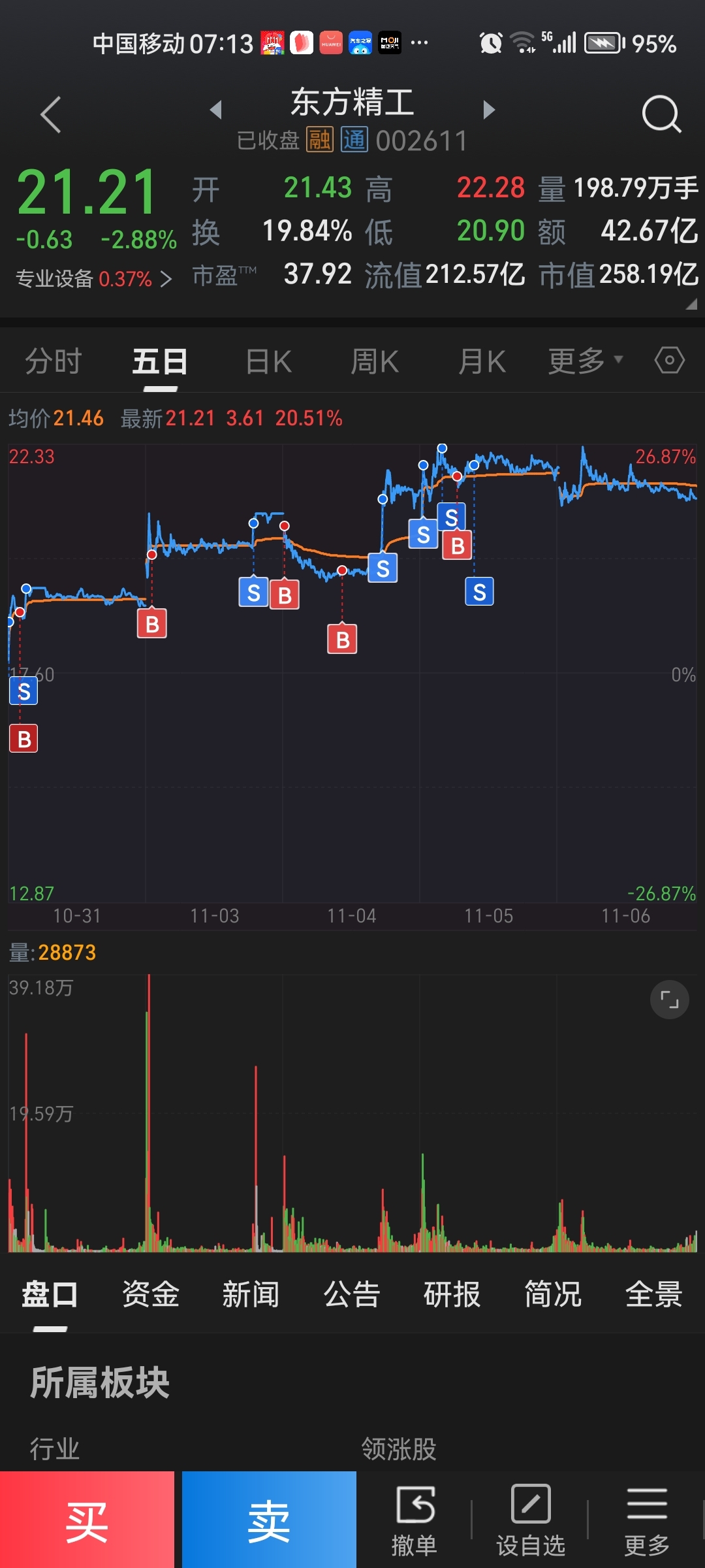 $东方精工(SZ002611)$ 看近期发帖,老韭菜不多了?大多是近期高位被套的新韭菜!持仓一年多,看透恶庄主力凶狠操作,三次被套,第四次终于把主力也套在高位,上周果断22.18元卖出八成仓,仅留两成底仓,等跌下来,再考虑炒底!这个股预期大,长线还早呢!