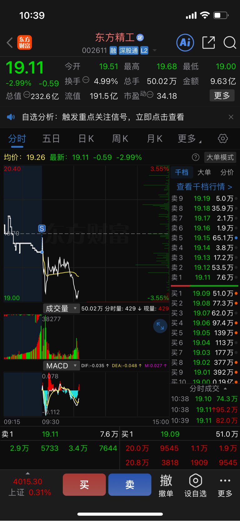 $东方精工(SZ002611)$ 过段时间再来了,兄弟姐妹们扛住,我还会回来的#复盘记录#