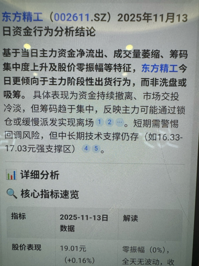 $东方精工(SZ002611)$ 缓慢派发筹码